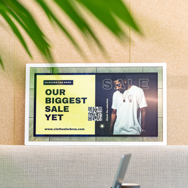 Maailman ensimmäinen suuri värillinen ePaper-näyttö staattiselle kuvalle on johdoton ja uskomattoman kevyt. Tämä mahdollistaa monipuoliset asennusvaihtoehdot mihin tahansa tilaan ja se luo täysin uusia mahdollisuuksia tavoittaa asiakkaita sekä ulkoettä sisätiloissa.